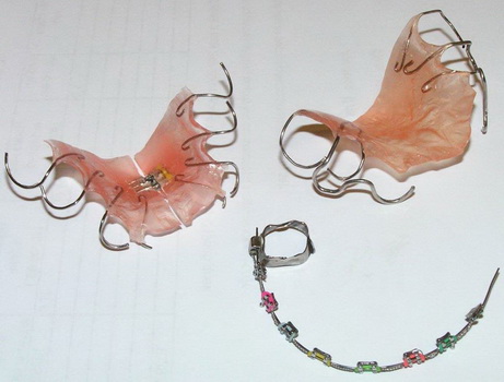 Брекеты соединяютсямеждусобойтонкойметаллическойдугой, припомощикоторойкакразипроисходитперемещениезубов. Брекетыкрепятсякдугеспециальнойлигатурой - именновнейпациентможетвоплотитьсвоижеланияифантазии, выбравцветиформупособственномуусмотрению. Брекеты обычно применяют у детей после того, как все молочные зубы сменятся постоянными, но их можно использовать в любом, даже взрослом, возрасте.