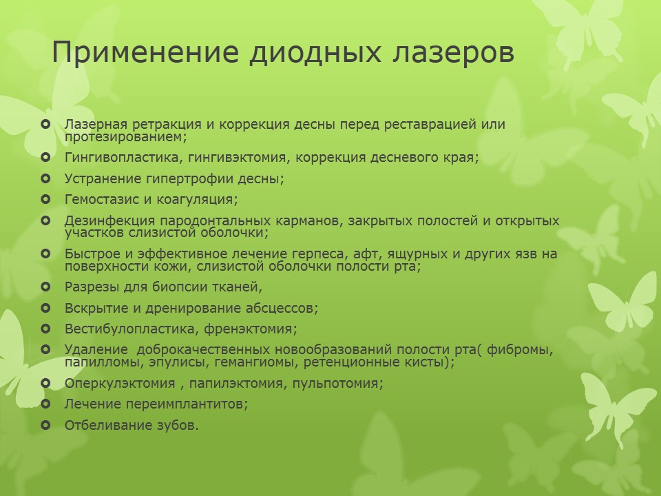 Современные технологии хирургического лечения. Применение диодного лазера в стоматологии9 сентября 2015 - среда Презентация в формате MS PowerPoint (1.5 Мб). Скачать...