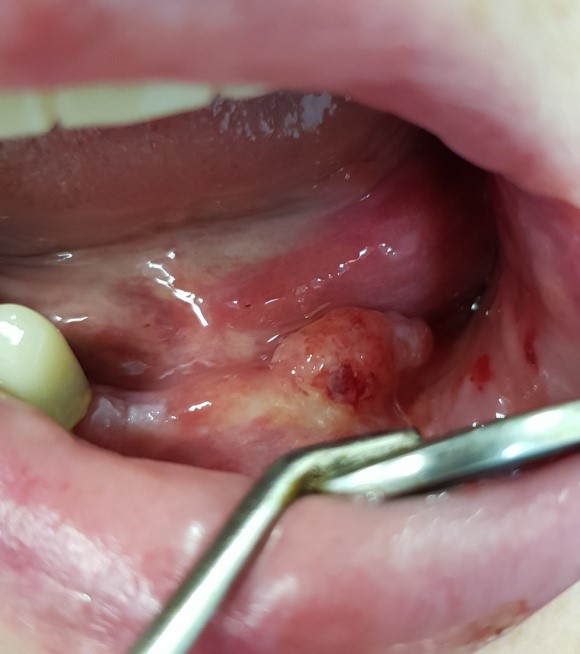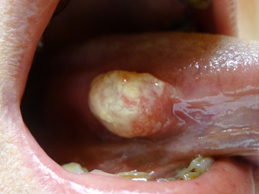 В настоящее время выявляемость рака полости рта среди нашего населения происходит на третей, четвертой стадии с локализацией на языке, подъязычной области, нижней губе и десне (фото 2, 3, 4, 5, 6) Фото 2 Фото 3